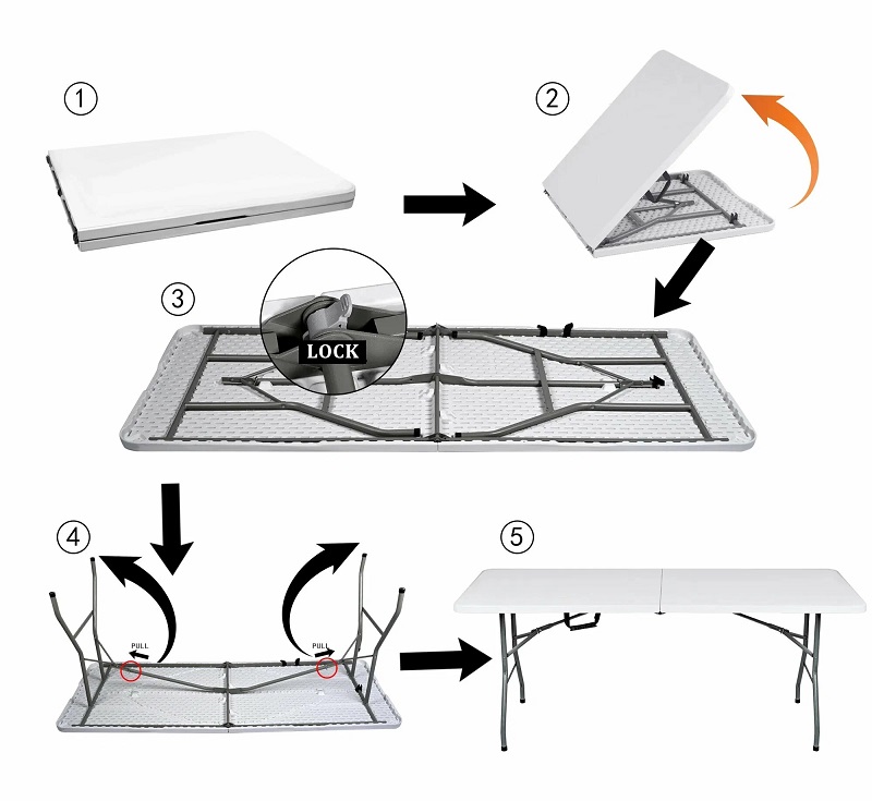 Решение-хит для пикника, выездного мероприятия, кейтеринга. Стол удобно складвывается в книжку, с помощью ручки его удобно транспортировать . Раскладка в один клик.